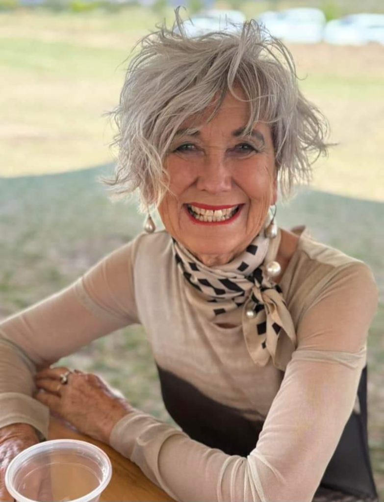 Sy is 'n insperasie vir ons jonger generasie, sy oefen elke dag, van stap tot Pilatus. " 'n Koei wat gaan le" is haar inspirasie praatjie, te midde van bankrotskap in hulle boerdery, het sy planne beraam en 'n rok uit Black Label blikke gemaak vir haar een dogter se matriekafskeid. Kreatiewe oorlewings meganismes. Sy het geleer sweis, die BLIKPLEK, kunswinkel was haar brein kind saam 'n vennoot. Bou self 'n SHACK HUIS uit weggooi vensters, deure, sinkplate. Hulle woonhuis in die dorp Ficksburg. Verskeie artikels is oor haar geskryf, tot haar kreatiewe opstaan vermoe. En selfs op 76 ry sy nog deur die land en op 'n humoristiese wyse motiveer sy mense. Opgeleide lag terrapeut en humoristiese yster hoede, maak dit 'n motivering met 'n kinkel. Sy het verskeie toekennings gekry as welwillendheids persoon van Ficksburg, as vrou in eie reg toekenning en maatskaplike werkster van die jaar. Of sy by Nampo moet gaan werk, of tee skink by die kerk, of na fancy dress partytjies gaan, daar gaan haar HOELA saam, sy kan nogsteeds HOELA, so dat die koppe draai. Sy HOELA en HEKEL gelyktydig in die strate van Parys FS om fleur aan die dag te gee. Sy is 'n Ma van 4 kinders, 1 seun, 1 dogter en 2ling dogters en 'n Ouma van 7 kleinkinders. Getroud met 1 man al vir 51jaar.